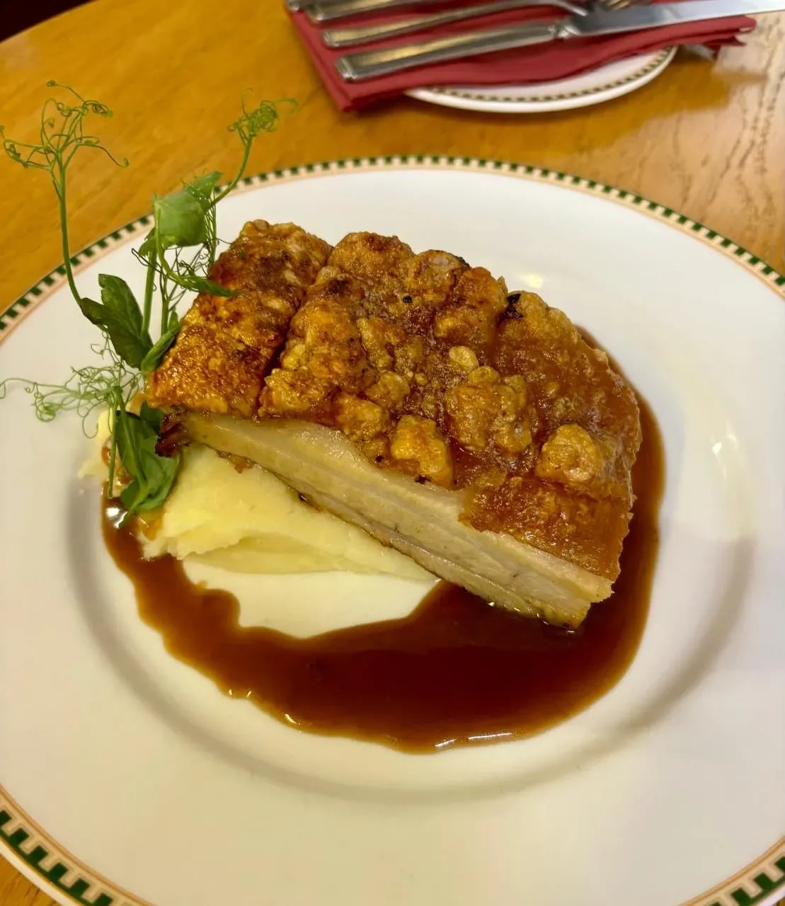 Manx sirloin beef roast or chicken breast supreme. Roast potatoes, fresh vegetables, gravy, stuffing and Yorkshire pudding.